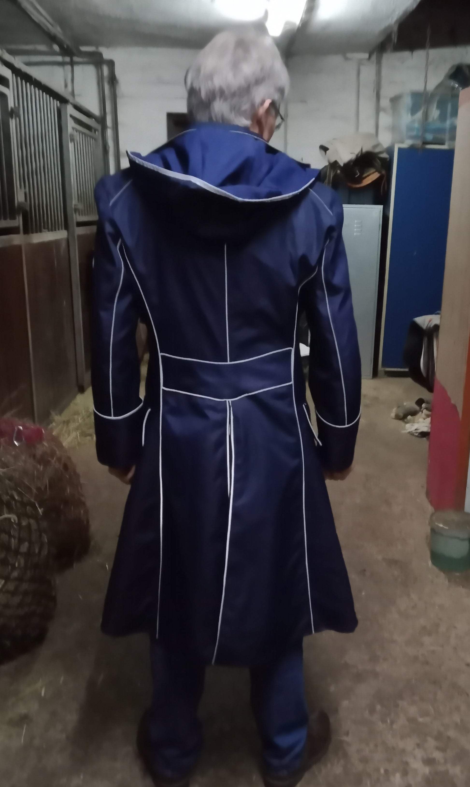 Herrenmantel, Größe 48, blau mit silbernen Reflexlinien